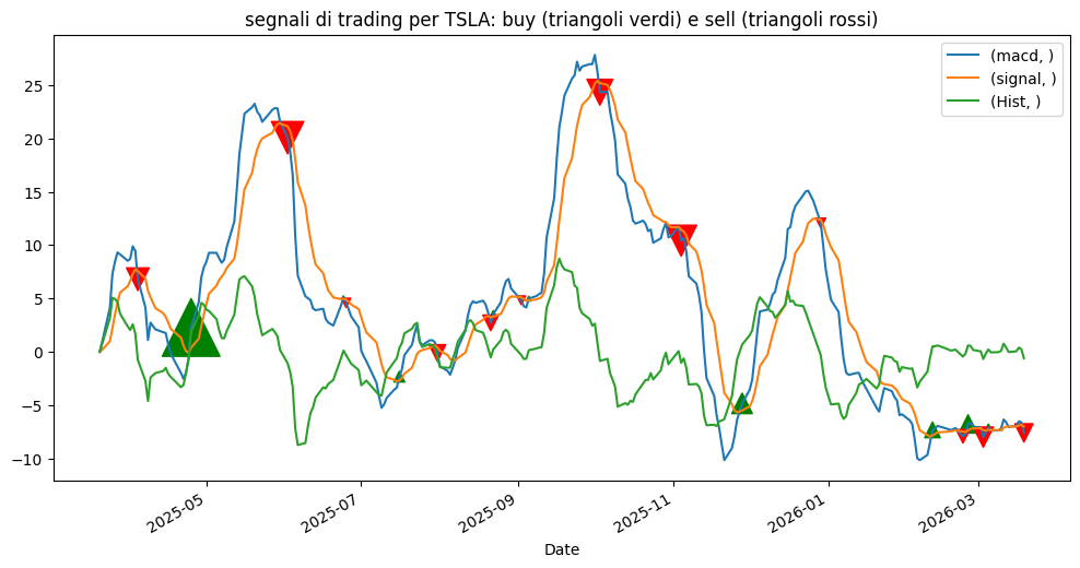 - Pannello 2: MACD con istogramma colorato (verde positivo, rosso negativo)