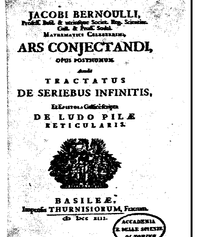 Ci limitiamo qui ad anticipare qualche notizia. Il calcolo delle probabilità diventa un vero e proprio ramo nuovo della ricerca matematica con un opera dello svizzero Giacomo Bernoulli (1654-1705), pubblicata a Basilea dopo la morte del suo autore, nel 1713, e intitolata Ars conjectandi (l'arte del congetturare). La prima sistemazione matura, rigorosa, moderna della nuova scienza sarà compiuta un secolo dopo, nel 1812, con un monumentale trattato sulla Théorie anaytique des probabilités, dal francese Pierre Simon de Laplace (1749-1827).